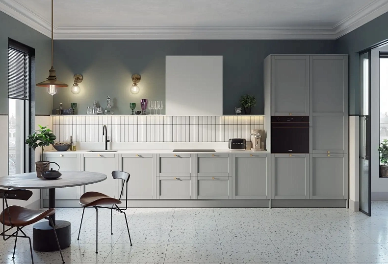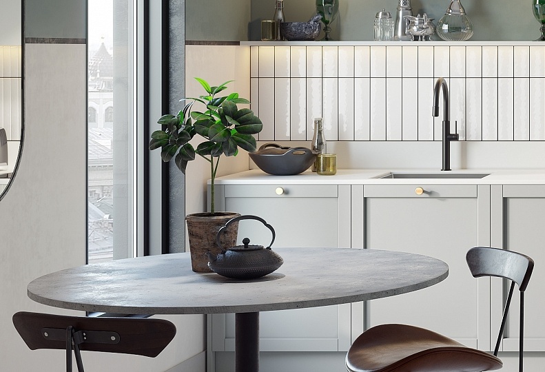 Коллекция Toledo Norden разработана в соответствии с тенденциями, отражающими изменения в образе жизни современного человека. Продукт закрывает основные актуальные стилистические тренды в дизайне мебели. Кухни в стиле неоклассика визуально кажутся легче и просторнее. Этот эффект создается благодаря отделке и правильно подобранной мебели. Вся обстановка неоклассического стиля стремится к минимализму. Здесь в первую очередь кухонная мебель должна быть функциональной. Поэтому модели гарнитуров имеют лаконичный дизайн и максимальную практичность. Коллекция разработана промышленным дизайнером Екатериной Даниловой специально для бренда DELTA